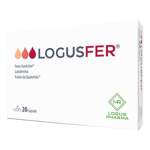 LOGUSFERDescrizione Integratore alimentare a base di SunActive (ferro pirofosfato microincapsulato), lattoferrina e folato. Il ferro contribuisce alla normale formazione dei globuli rossi e dell’emoglobina. Il folato contribuisce alla crescita dei tessuti materni in gravidanza e alla normale emopoiesi. Ingredienti SunActive (ferro pirofosfato microincapsulato), lattoferrina (derivato del latte), folato come Quatrefolic [acido (6S)-5 metiltetraidrofolico, sale di glucosamina]. acidi grassi; agente di carica: cellulosa microcristallina; folato da Quatrefolic [acido (6S)-5-metiltetraidrofolico, sale di glucosamina]; colorante...